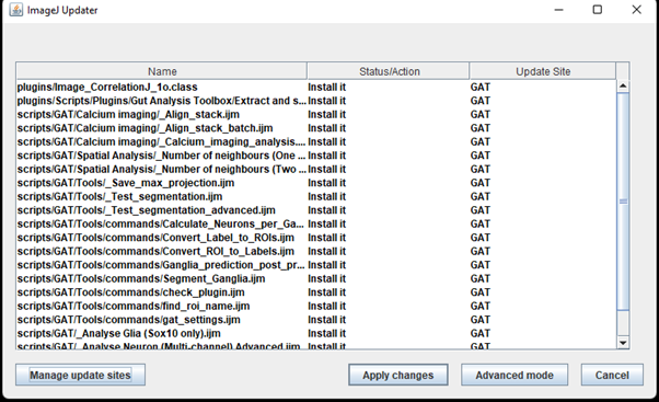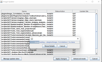 Click Apply changes. The updates will be downloaded. Once its done, make sure you restart Fiji. The newest version of GAT should be available.