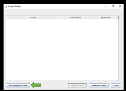 Once its done, the ImageJ Updater box will appear. Click Manage update sites on the bottom left and a window pops up: