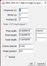 It should state the pixel width and height in microns. If not, please enter this manually. GAT will only work properly if this information is entered.