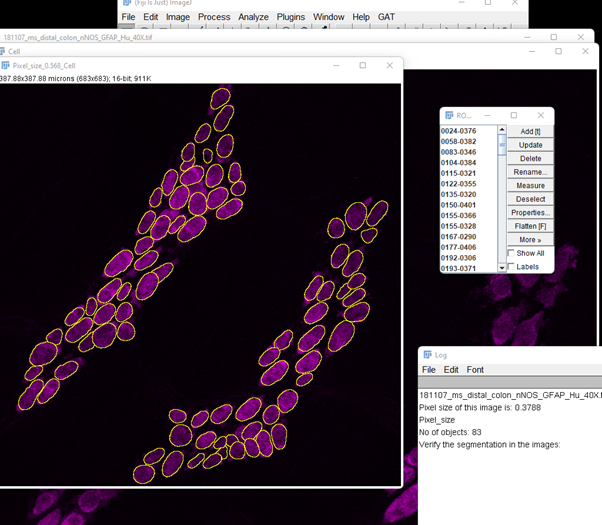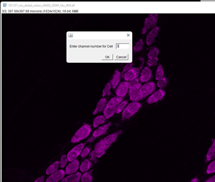 For this example, one of the sample images will be: 181107_ms_distal_colon_nNOS_GFAP_Hu_40X.tif