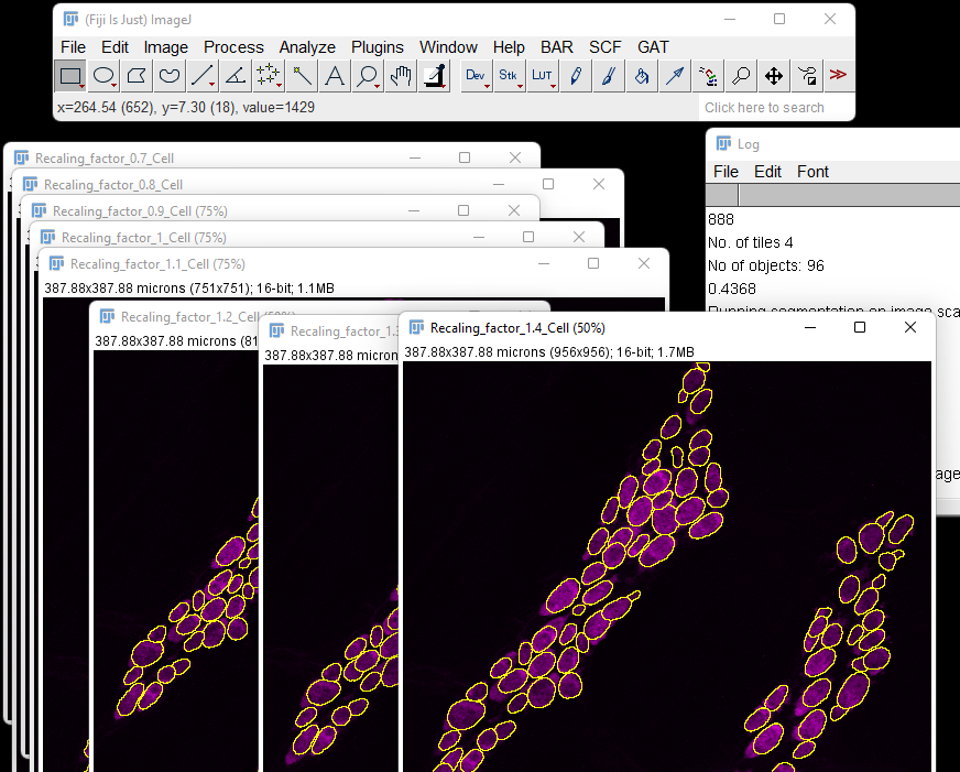 It will now cycle through the rescaling factors, resize the images and run segmentation on them.