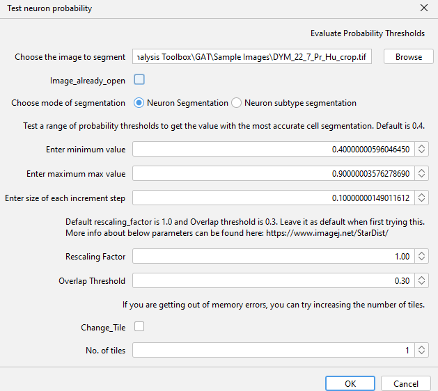 The other parameters that can be adjusted within GAT is the “Probability” and “Overlap Threshold” of the StarDist segmentation.